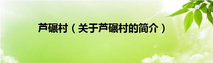大家好,很多人对芦碾村,关于芦碾村的简介这个还不是很了解,现在让我们一起来看看吧!