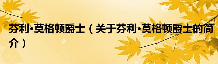 大家好,很多人对芬利·莫格顿爵士,关于芬利·莫格顿爵士的简介这个还不是很了解,现在让我们一起来看看吧!