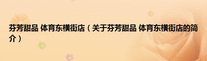 芬芳甜品 体育东横街店(关于芬芳甜品 体育东横街店的简介)